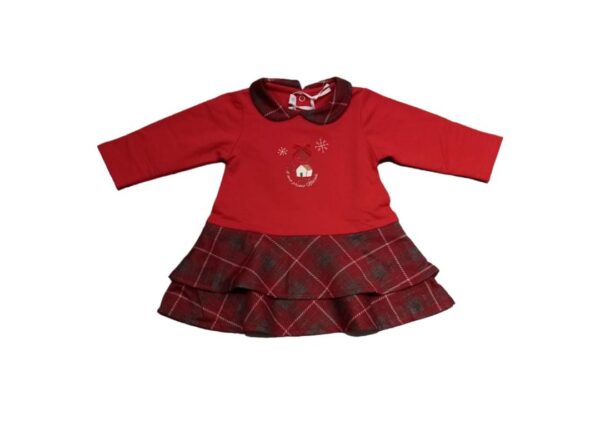 Il capo presenta il colletto e la gonnellina in stile scozzese.