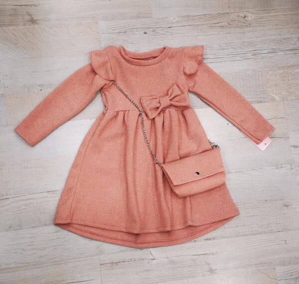 VESTITO BIMBA A MANICA LUNGA CON FIOCCO APPLICATO SUL DAVANTI E TESSUTO LAMINATO.