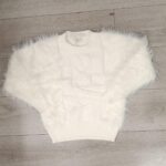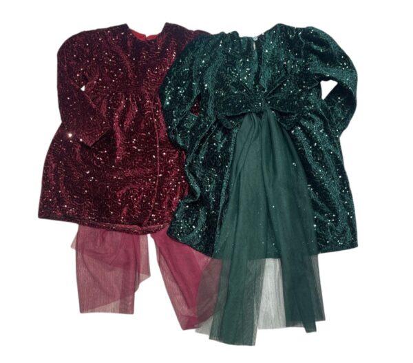 vestito in ciniglia ricoperto da paillettes, manica a palloncino.