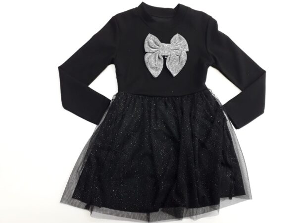CON GONNA IN TULLE ARRICCIATO,EFFETTO LAMINATO,CON FIOCCO APPLICATO SUL CORPETTO,