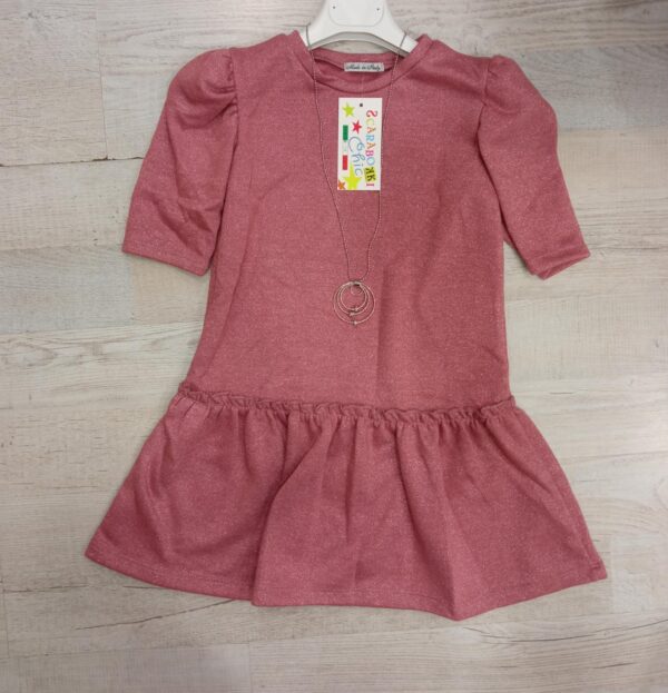 VESTITO BIMBA RAGAZZA IN CALDO COTONE LUREX MANICA CORTA CON COLLANA FASHION.