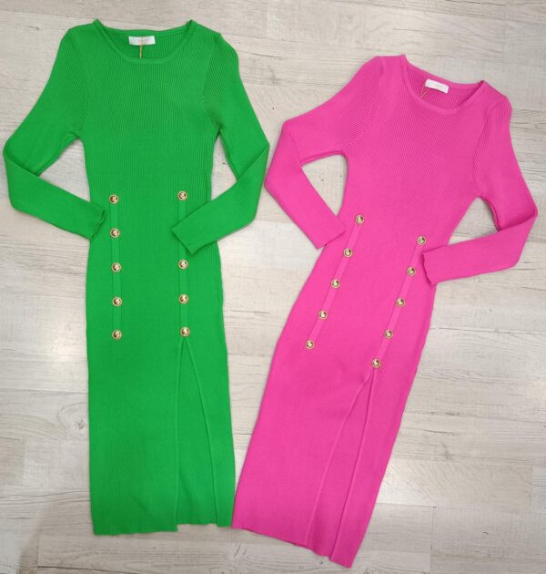 vestito donna a costine, modello elasticizzato con spacco e bottoncini sul davanti
