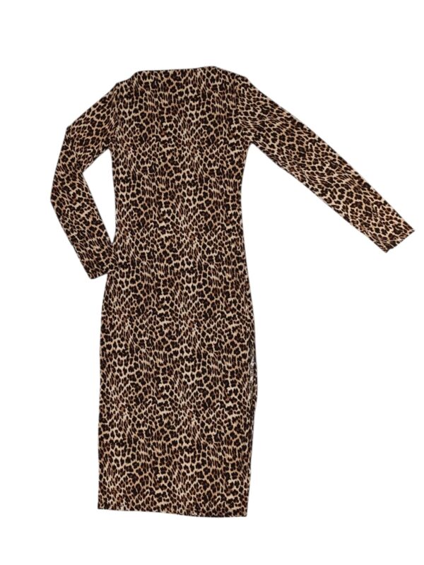 Abito donna aderente con stampa animalier, manica lunga e scollo dritto.