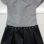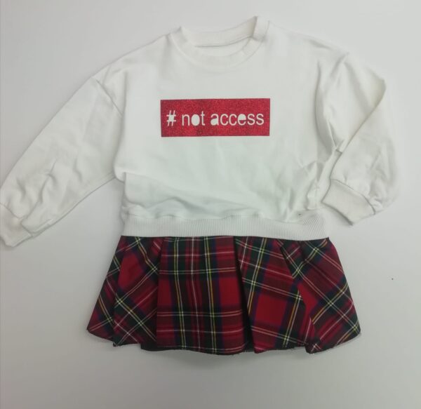 A GIROCOLLO,SCRITTA “NOT ACCESS”SUL DAVANTI,FANTASIA A QUADRI SULLA GONNA A PIEGHE,